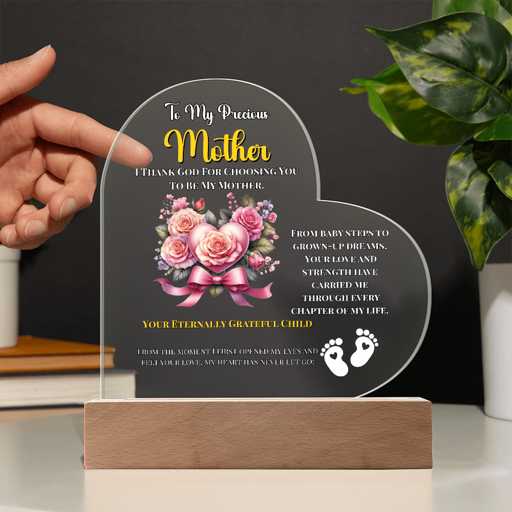 This “To My Precious Mother” Personalized LED Heart Plaque turns heartfelt words into a glowing keepsake — a symbol of gratitude that lights up her world.